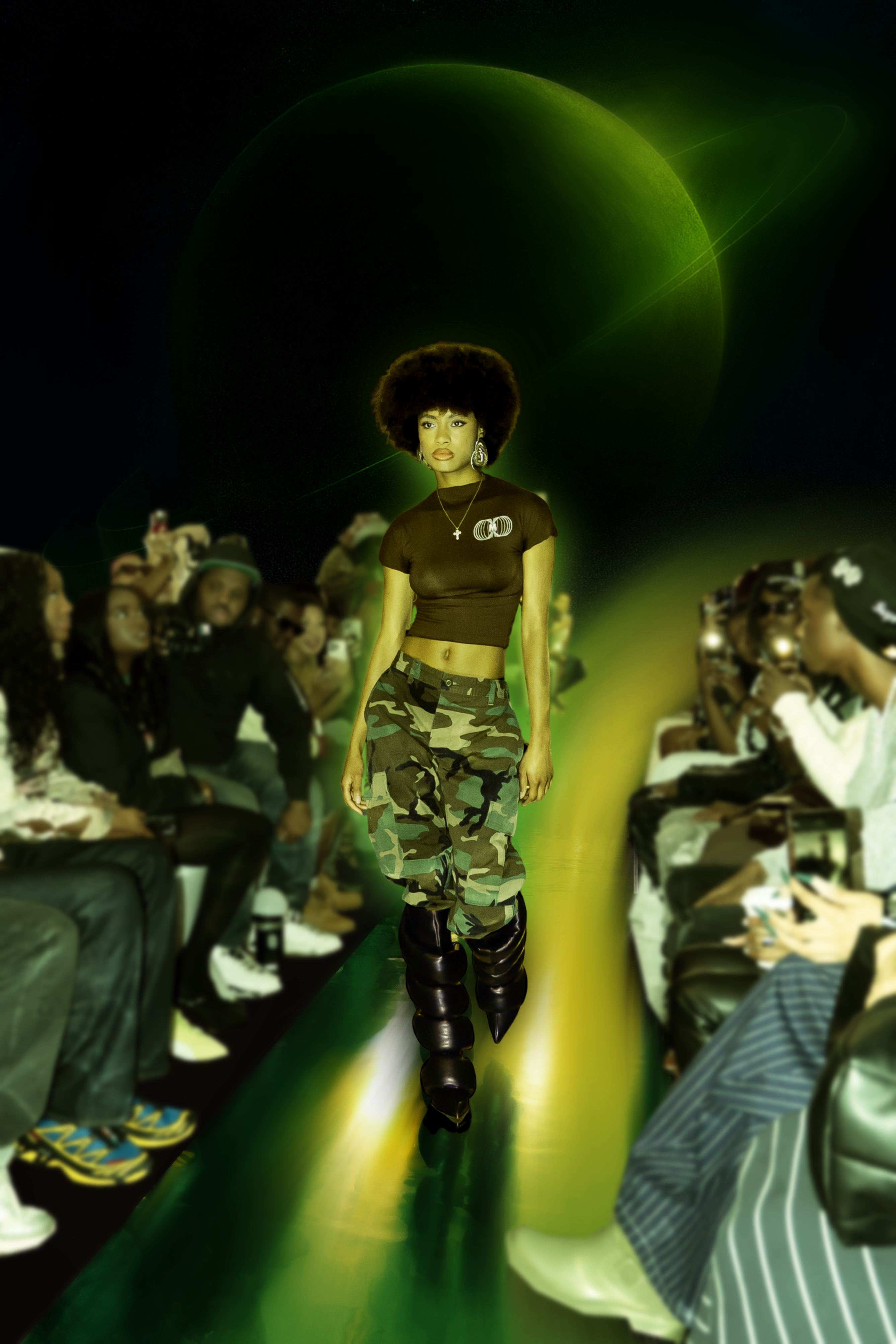 On September 12th, MWORLD Studio debuted its first solo NYFW show, COSMIC VOYAGE, taking the audience on a journey from Earth to Mars to Venus. The collection showcased futuristic silhouettes—chrome puffer boots, gradient sweats, balloon pants, and bold outerwear—designed as armor for the future. With over 100 guests in attendance, the show marked a powerful beginning for MWORLD’s universe.